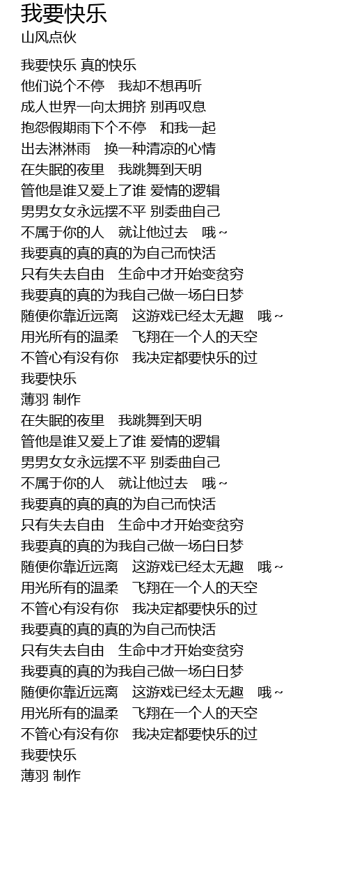 | [04:15.92] | 我要快乐 |
